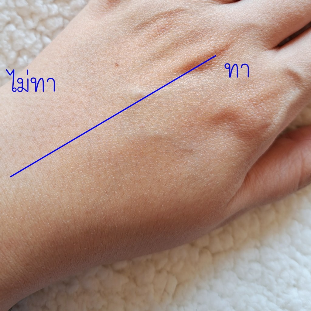 เกลี่ยได้ง่าย ให้สัมผัสลื่น นุ่มนวล เย็นสบายผิว มีความโกลว์อยู่หน่อยๆ ฟีลลิ่งหลังแห้งค่อนข้างดี ระหว่างวันไม่เยิ้ม ไม่ลื่นไม่เมือกเมื่อเหงื่อออก