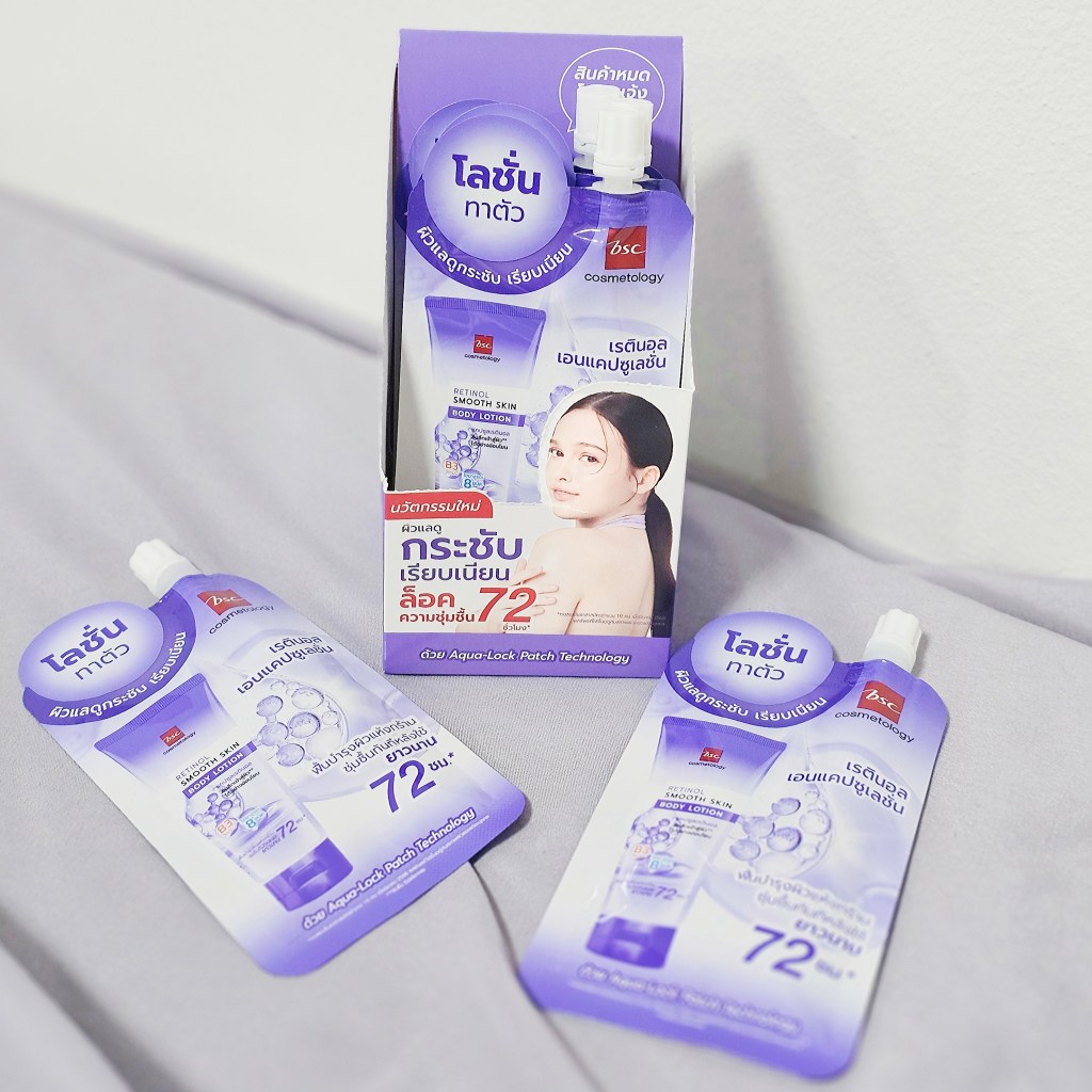 bsc cosmetology ออก body lotion ผสมเรตินอลแบบซองมาใหม่ จะเลิศแค่ไหน เรามาดูกัน ส่วนนี้จะเป็นหน้าตาของน้องนะคะ