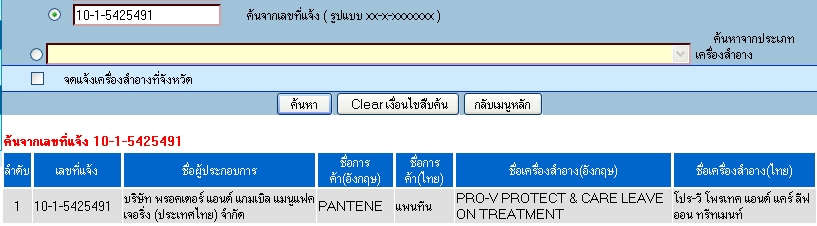 คลิกคำว่า ข้อมูลรับแจ้งรายละเอียดเครื่องสำอาง (ส่วนที่ตีกรอบสีม่วงไว้) จะได้หน้าต่างดังรูป