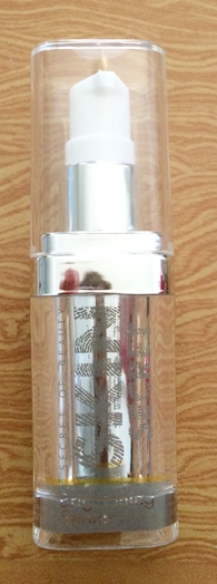 ขวดเป็นขวดทรงกระบอกสี่เหลี่ยม น่าจะเป็นอคริลิกใสคล้ายคริสตัล ข้างในมีกระบอกสีเงินอุ้มผลิตภัณฑ์ข้างในไว้อีกชั้นหนึ่ง