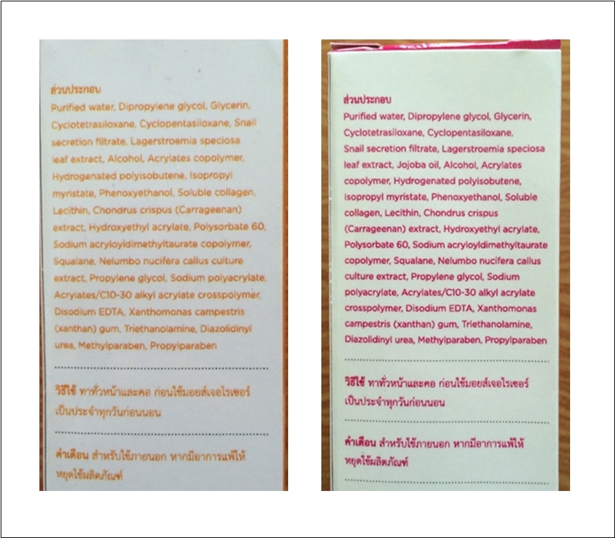 ในด้านของส่วนผสม ทั้งสองตัวจะค่อนข้างคล้ายกันค่ะ