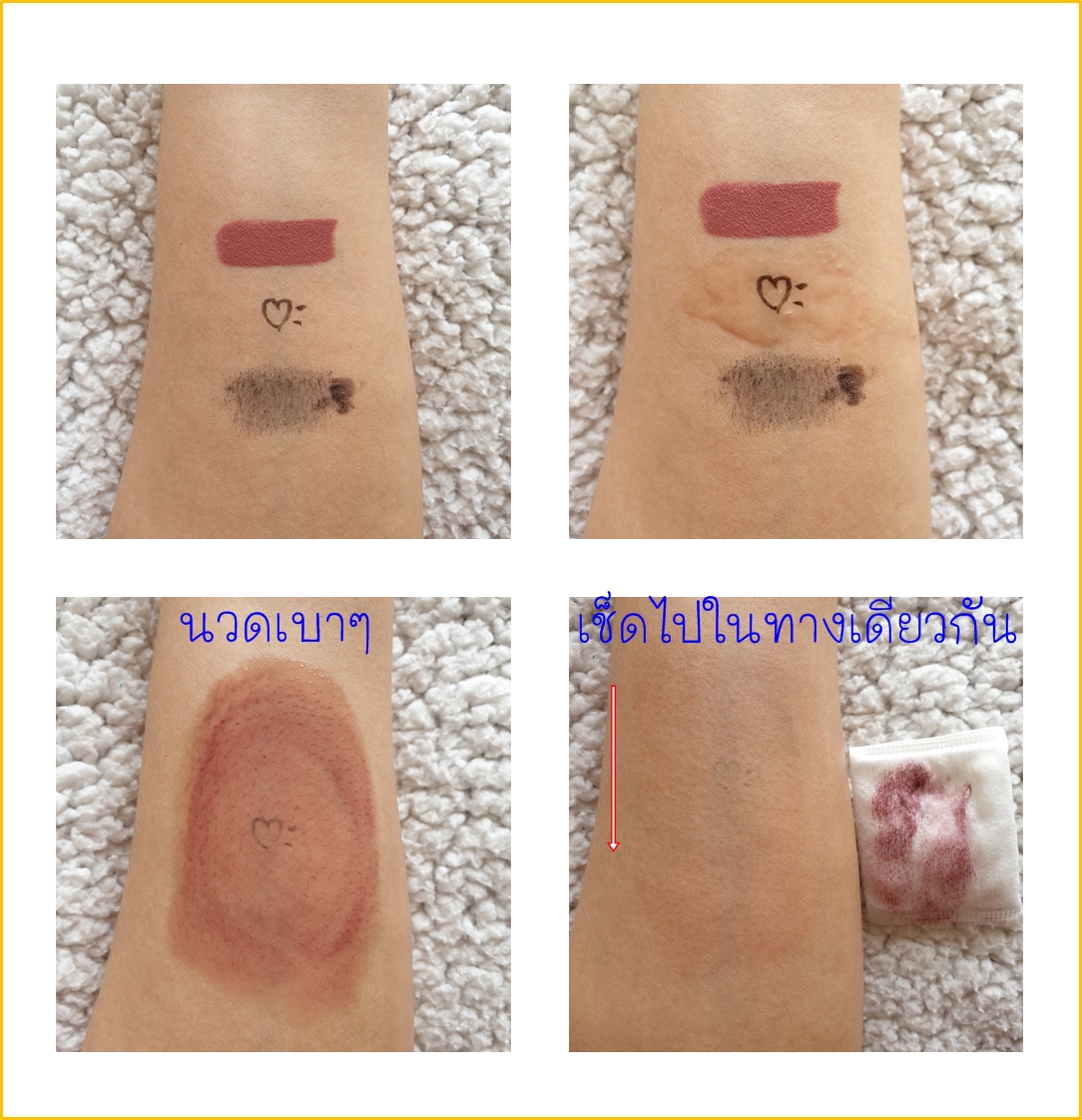 ส่วนตัวได้ลองใช้เอามานวดวนเบาๆ สักพักให้ทั่วใบหน้า ก่อนใช้สำลีค่อยๆ ลากออกเบาๆ