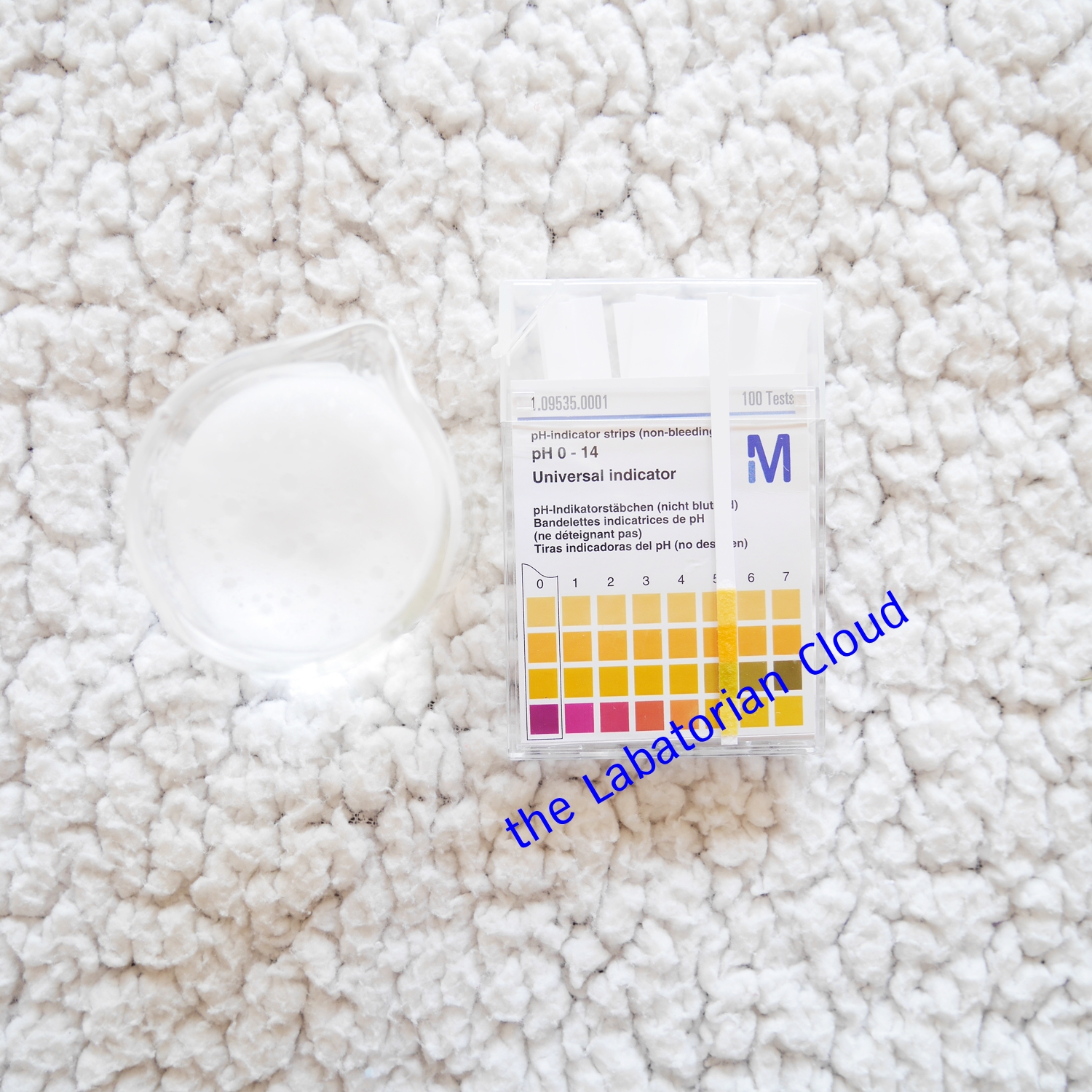 ลองวัดค่า pH หลังละลายมูสในน้ำได้อยู่ที่ราวๆ 5 ซึ่งถือว่าทำมาได้ใกล้เคียงกับค่า pH ของผิว