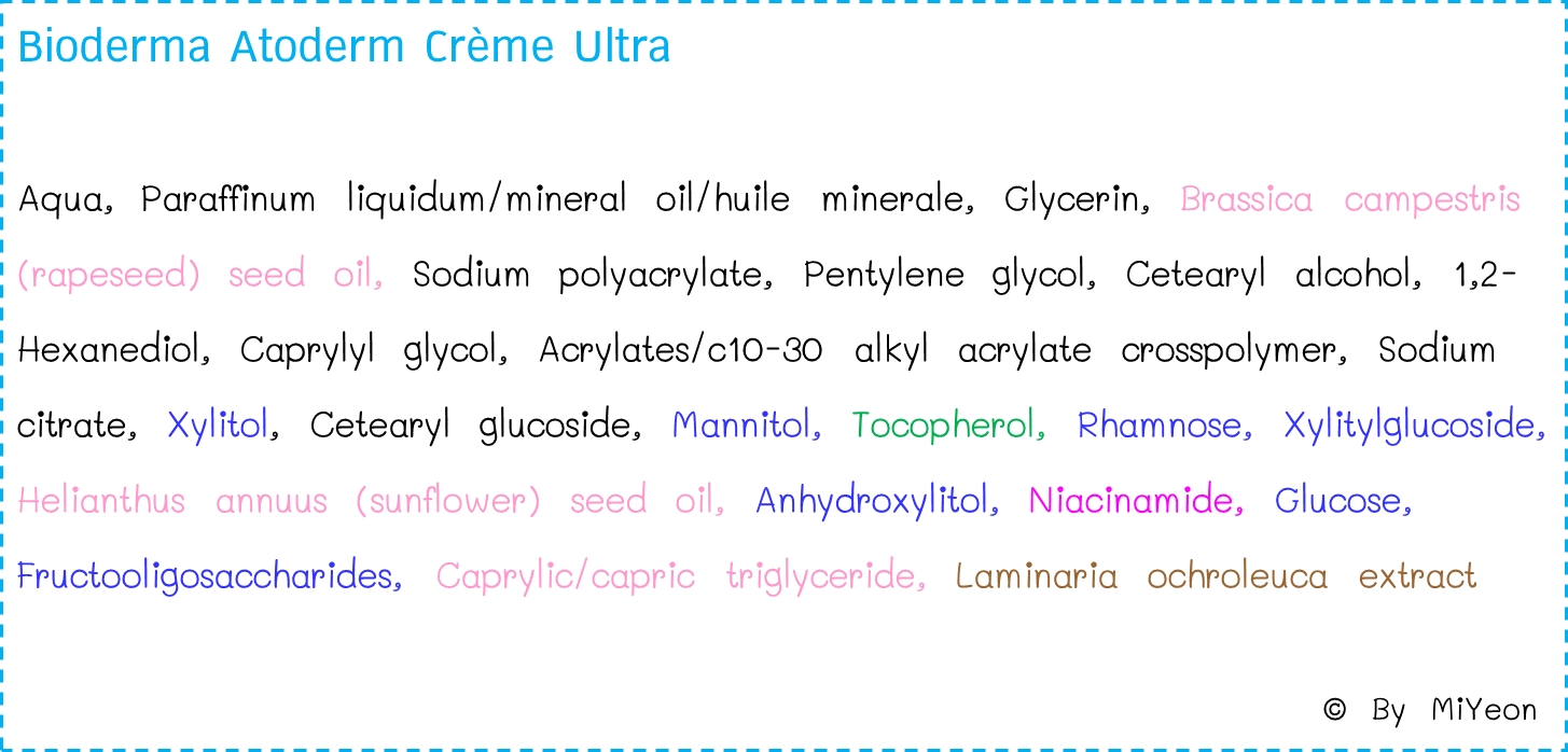 ถ้าดูจากส่วนผสม BIODERMA Atoderm Crème Ultra เป็นผลิตภัณฑ์มอยส์เจอไรเซอร์ที่ทำมาได้ค่อนข้างสมบูรณ์มีครบทั้ง Humectant สารจับน้ำ จับเสร็จก็เคลือบปิดด้วย mineral oil เป็น occlusive หรือ ออยล์เคลือบ และมีไขมันจากธรรมชาติจาก Rapeseed, Sunflower ทดแทนคืนให้ผิว เป็น emollient หรือ ออยล์บำรุง