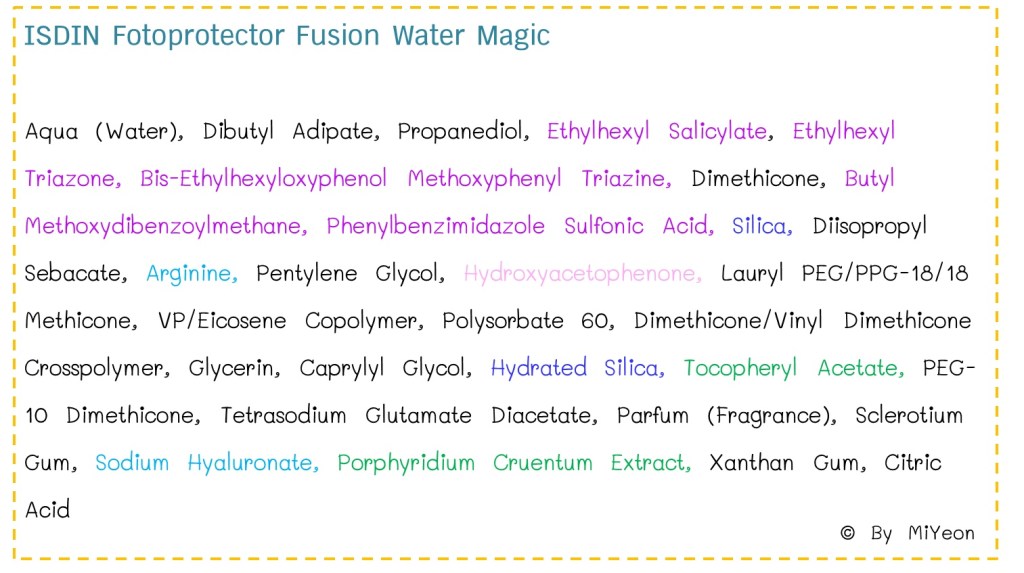 - Diethylamino hydroxybenzoyl hexyl benzoate หรือ Uvinul A+ เป็นตัวกรอง UVA ที่เด่นเรื่องการปกป้องการเกิดอนุมูลอิสระจากรังสี UV ในผิว มีความคงตัวดี