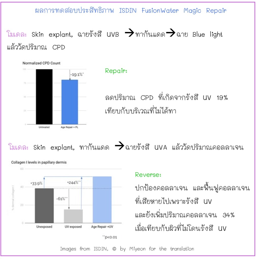 - ANTI-OX ACTIVE ซึ่งเป็น mycosporine like amino acids (MAA) ที่ได้รับแรงบันดาลใจจากแบคทีเรียในทะเล มีคุณสมบัติ antioxidant ที่ดี ดูดซับรังสี UVA, UVB (Antioxidants (Basel). 2015 Sep 7;4(3):603–646.) และ ปกป้ององค์ประกอบของผิวไม่ให้ถูกทำลายเพราะรังสี UV และน่าจะให้ประโยชน์ยาวไปถึง Infrared, Visible light ไปพร้อมๆ กัน ผ่านการเสริมความสามารถในการเป็น Antioxidant ตามธรรมชาติของผิว