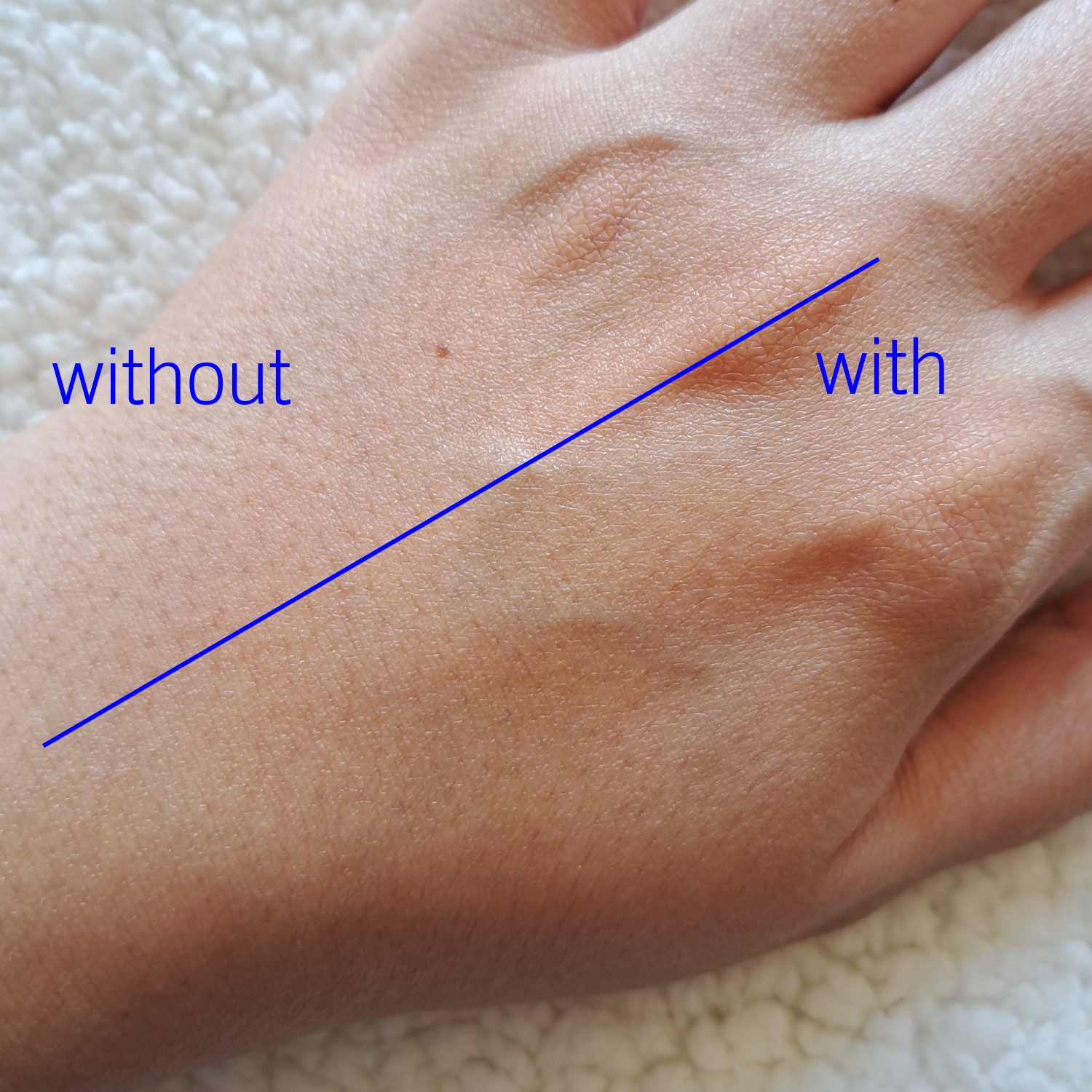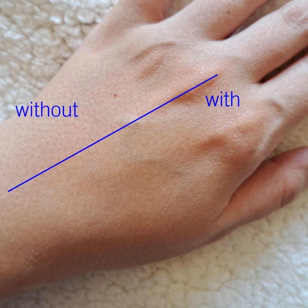 ใช้แสงแฟลชเก็บภาพความโกลว์ หลังทาเกลี่ย แล้วทิ้งไว้ 1 นาทีค่ะ