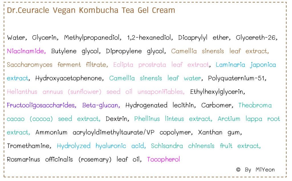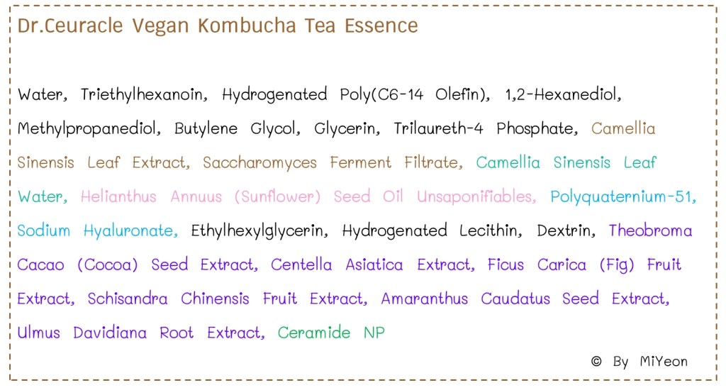 สำหรับส่วนผสมในภาพรวม ที่ดูเด่นจะเป็นคอมบิเนชั่นของตัว Kombucha ที่ผ่านกระบวนการหมัก และสารสกัดจากจุลินทรีย์ Probiotic อย่าง Bifida ferment filtrate, Lactobacillus ferment และ Lactobacillus ferment lysate ที่ดูแลเรื่อง Microbiome ของผิว เพื่อให้ผิวแข็งแรง