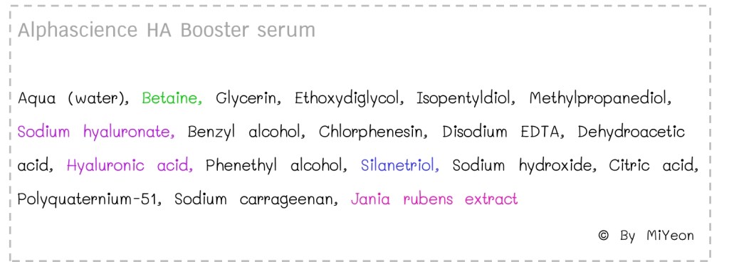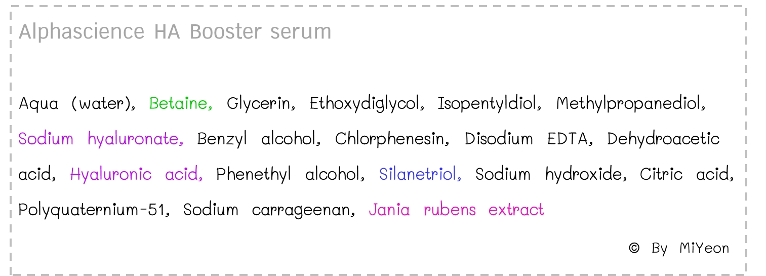โดยรวมส่วนผสมของสารบำรุงที่ใส่มาใน HA booster serum นี่คือตัวตึงด้านการเติมน้ำ ผิวกระชับ แข็งแรง และดูแลผิวด้านริ้วรอย ชะลอวัย อาจจะได้เรื่องความรู้สึกสบายผิว การระคายเคือง และ whitening อยู่ด้วย