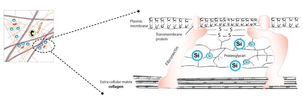 Silicon จะไปจับกับช่องว่างระหว่างเส้นใย Fiber ที่เป็น Matrix ต่างๆ ใน Dermis ให้ผิวเรามีความนุ่มแน่น แข็งแรง