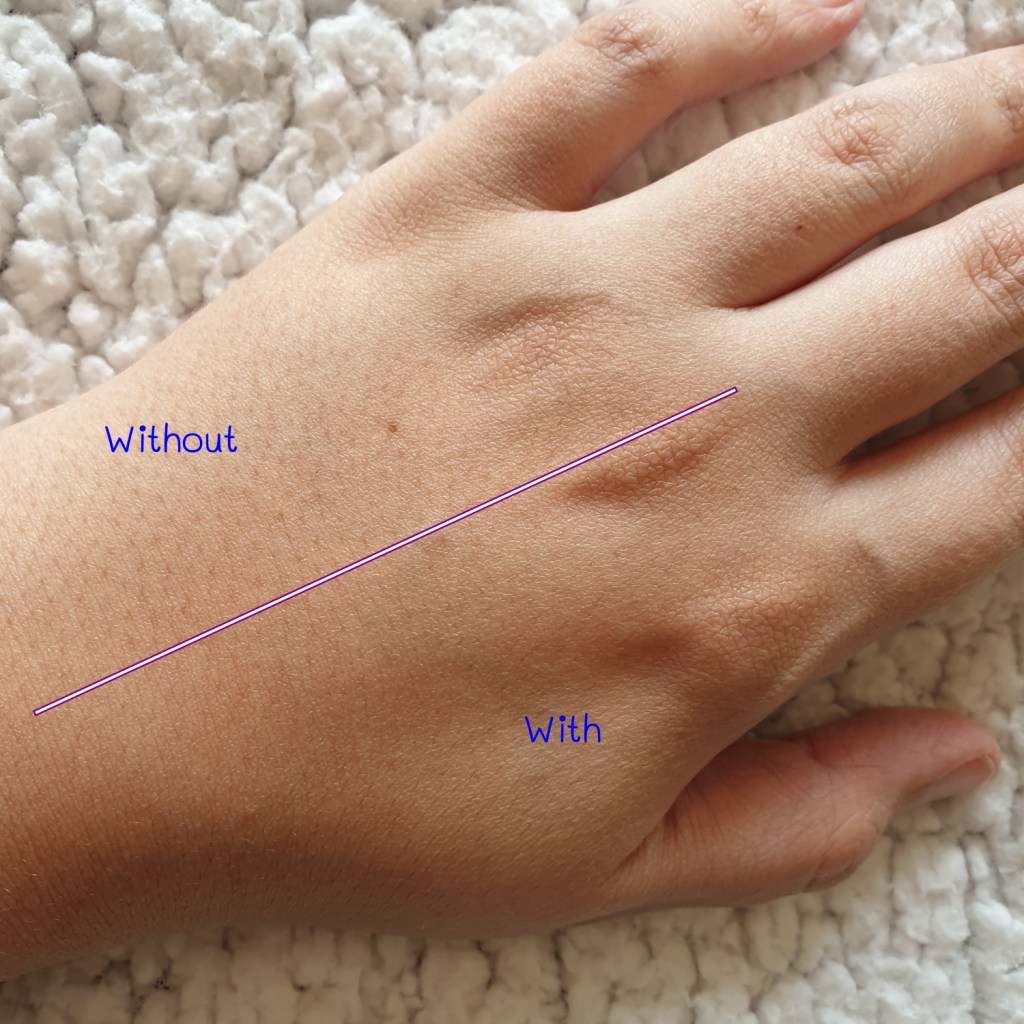 เกลี่ยได้ง่าย ช่วงแรกจะรู้สึกหนึบ แต่พอผ่านไปไม่ถึง 1 นาที ก็จะรู้สึกนุ่มนวล และชุ่มชื้น
