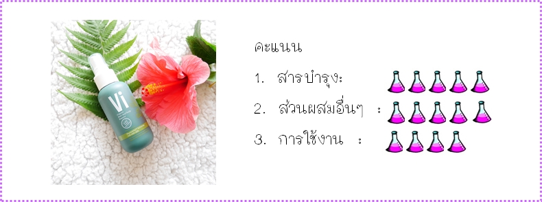 - ส่วนผสมอื่นๆ ทำมาได้ค่อนข้างดี และไม่มีสารที่ไม่เป็นมิตรกับผิว เลยไม่มีที่ให้หักคะแนน รับไป 5 ฟลาสก์