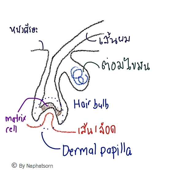 - Exogen เป็นระยะหลัง Telogen ที่ผมหลุดออกไป แล้วรากผมนั้นก็จะเข้าสู่อีกระยะหนึ่ง ที่เรียกว่า