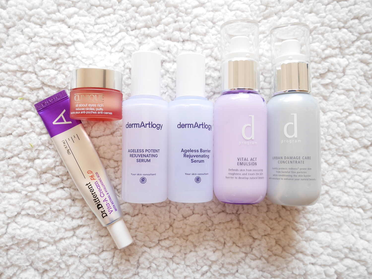 ส่วน 2 ชิ้นด้านขวาสุดเป็น Skincare มาจากทางฝั่งญี่ปุ่น อย่าง d Program ส่วนตัวชอบสูตร Urban damage care concentrate กับ Emulsion สูตรสีม่วง