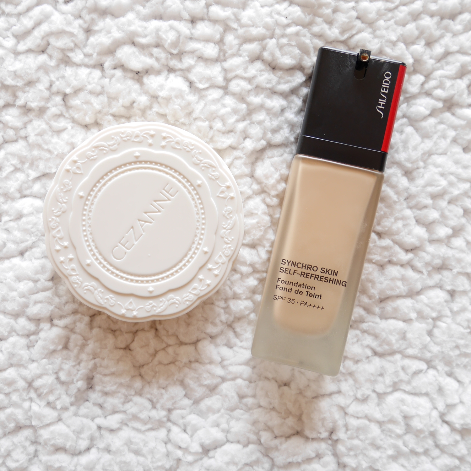 กลุ่ม Base makeup จะเป็นแป้งของ Cezanne กับ รองพื้น Synchro skin self-refreshing ของ Shiseido ค่ะ