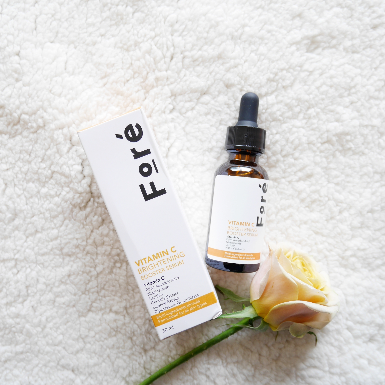 - L-ascorbic acid (LAA) เป็นรูปแบบธรรมชาติของวิตามินซี ซึ่งมีประโยชน์ต่อผิวหลายๆ ด้าน ไม่ว่าจะเป็นคุณสมบัติ Antioxidant ต่อต้านอนุมูลอิสระ, ในด้าน Whitening โดยไปยับยั้งการทำงานของเอนไซม์ Tyrosinase เป็นส่วนประกอบในการสังเคราะห์คอลลาเจน และลดการอักเสบผ่านระบบ NF-kB