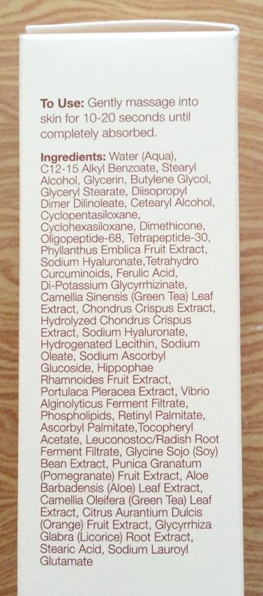 Water (Aqua), Vaccinium MyrtillusFruit/Leaf Extract, Butylene Glycol, Saccharum Officinarum (Sugar Cane)Extract, Glycerin, Sodium Hyaluronate, Acer Saccharum (Sugar Maple) Extract, Citrus Medica Limonum (Lemon) Extract, Citrus Aurantium Dulcis (Orange) Fruit Extract, Glycine Soja (Soy) Bean Extract, Punica Granatum (Pomegranate) Fruit Extract, Aloe Barbadensis (Aloe) Leaf Extract, Camellia Oleifera (Green Tea) Leaf Extract, Glycyrrhiza Glabra (Licorice) Root Extract, Pyrus Malus (Apple) Fruit Extract, Cucumis Sativus (Cucumber) Fruit Extract, Lactic Acid, Glycolic Acid, Hydroxyethylcellulose, Ethylhexylglycerin, Phenoxyethanol