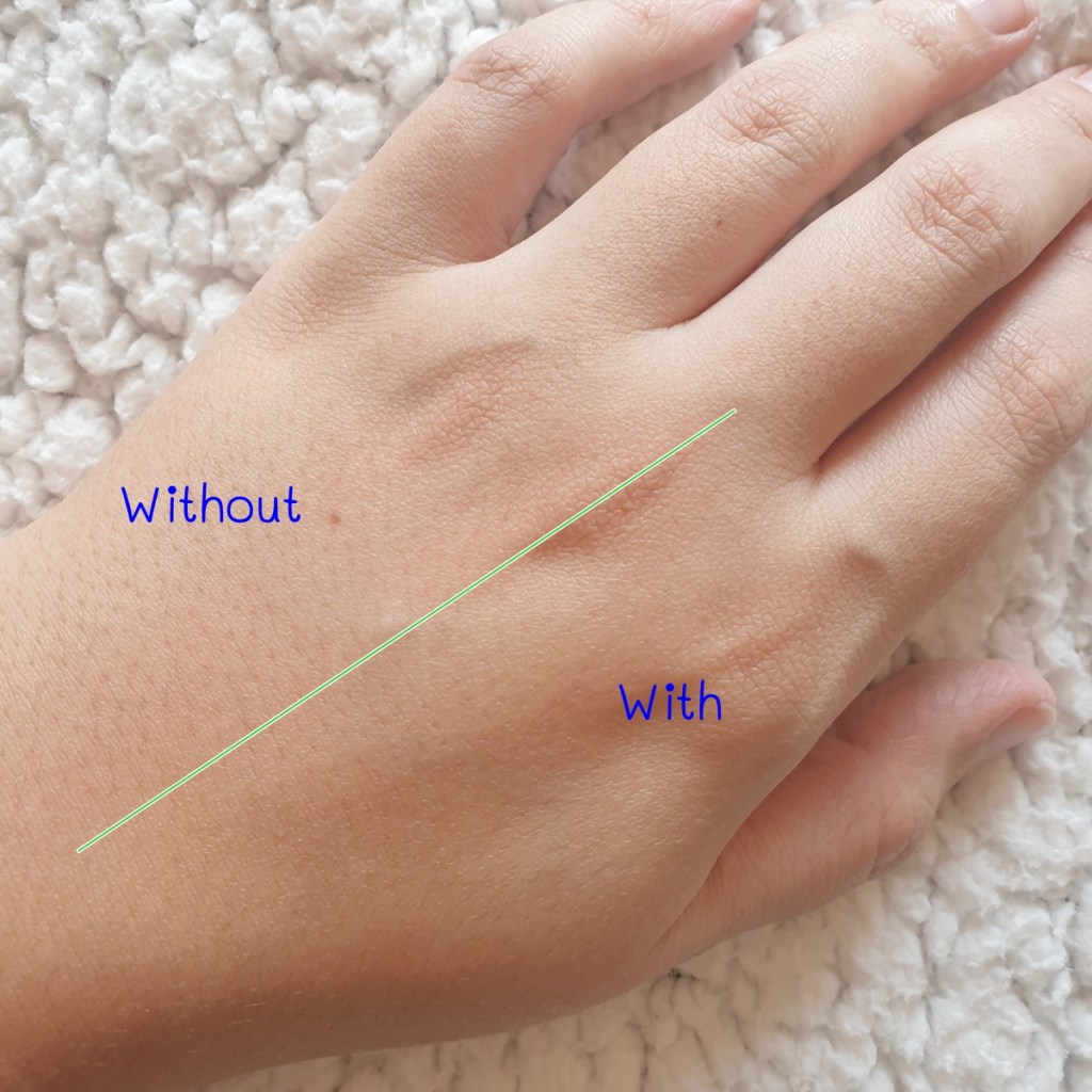 เกลี่ยได้ง่าย มีความชุ่มชื้นดี แต่ไม่ถึงกับเหนอะหนะ ไม่มีกลิ่นเนื่องจากไม่มีส่วนผสมของน้ำหอม