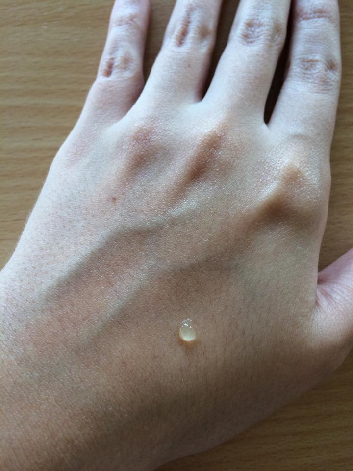 เนื้อจะเป็นเจลใสๆ เกลี่ยง่าย ตอนแรกจะรู้สึกเหมือนมีฟิล์มบางๆเคลือบผิวอยู่ แต่พอทิ้งไว้ซักพักก็จะซึมจนหายไปหมด