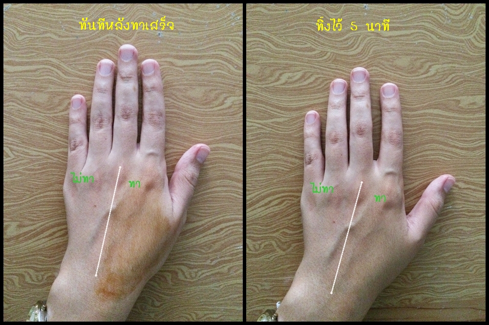 เกลี่ยค่อนข้างง่าย ซึมไวมาก ไม่ทิ้งร่องรอย ความมัน หรือความเหนอะหนะอะไรไว้เลยค่ะ