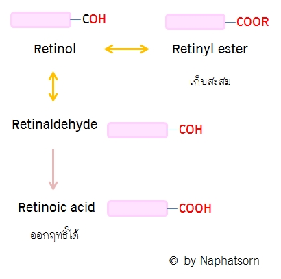 สำหรับกลุ่ม Retinoids จะมีด้วยกัน 2 ตัว คือ HPR กับ Retinol ซึ่ง HPR สามารถออกฤทธิ์ได้เลย และ Retinol เวลาลงผิวจะถูกแปรสภาพก่อน จึงจะออกฤทธิ์ได้