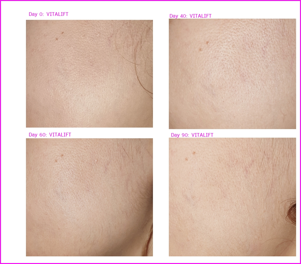 ตัวผลิตภัณฑ์ผ่านการทดสอบประสิทธิภาพในผู้หญิงอายุ 30 – 59 คน จำนวน 21 คน เป็นเวลา 4 สัปดาห์ โดยสถาบัน P&K Skin Clinical Research Center (Ref: Dr.G Korea Official Website) โดยทางนี้เลือกมา 2 parameters คือ ริ้วรอยบนหน้าผาก กับ ร่องแก้ม