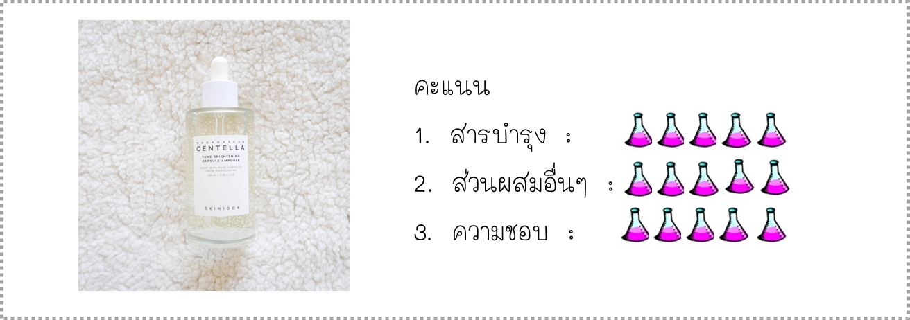 - ส่วนผสมอื่นๆ ไม่มีสารที่ไม่เป็นมิตรกับผิว ให้ไป 5 ฟลาสก์