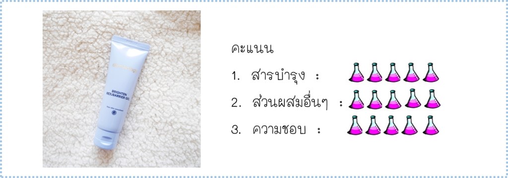 ในภาพรวมน้องมาในเบสแบบน้ำ มีส่วนผสมของน้ำมันบำรุงผิวอยู่นิดหน่อย