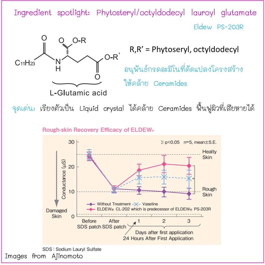 ถัดมาเป็น Sodium ascorbyl phosphate ที่เป็นอนุพันธ์ของวิตามินซีที่ละลายน้ำได้ เป็น antioxidant ที่ดี มีประโยชน์ในเชิง whitening และมีประโยชน์เสริมในการดูแลปัญหาสิว