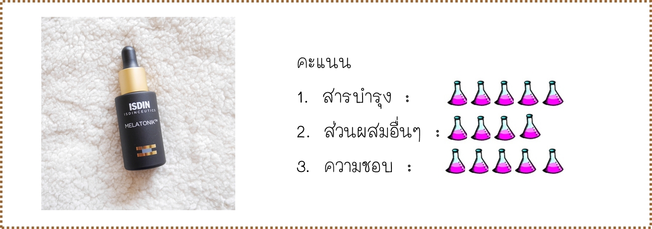 - ความชอบ ส่วนตัวค่อนข้างชอบความเป็นเบสน้ำของผลิตภัณฑ์ ใช้งานง่าย เลเยอร์ลงสกินแคร์รูทีนได้ง่าย จะเสริมน้ำตบเซราไมด์ของแบรนด์ก็คือจอยอยู่นะฟินไม่แพ้กัน หรือเอามาทำ retinol sandwich คู่กับมอยส์ที่มีอยู่ก็จอยไม่แพ้กัน ให้ไป 5 ฟลาสก์