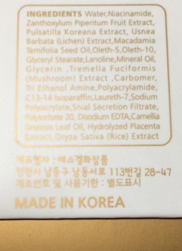 ส่วนที่เหลือจะเป็น Hydrolyzed placental protein ที่มีประโยชน์ในการเติมน้ำ เพิ่มความชุ่มชื้น และ สารสกัดจากข้าว ซึ่งบางสายพันธ์ก็เป็น Antioxidant ที่ดี