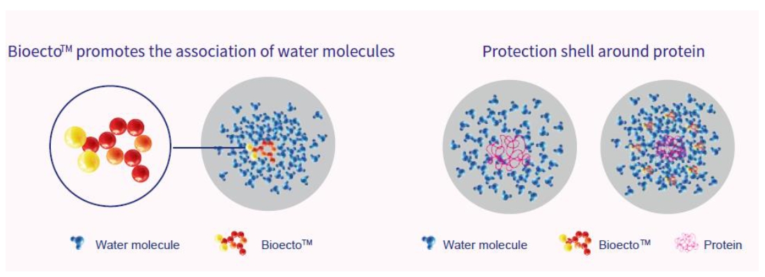 - Double peptide complex ที่เบลนด์ Acetyl hexapeptide-8 ที่ให้ผลคลายริ้วรอยชั่วคราว ร่วมกับ Palmitoyl pentapeptide-4 ที่เสริมสร้างการผลิตคอลลาเจนและเส้นใยใน dermis ให้ผิวกระชับ ยืดหยุ่น ไม่หย่อนคล้อย เมื่อใช้ร่วมกัน ในทางทฤษฎีก็จะช่วยคลายริ้วรอยชั่วคราวในระยะสั้น และค่อยๆ ซัพพอร์ตการสร้างเส้นใยออกมาในระยะยาว
