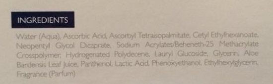 2.1 ส่วนของน้ำ ได้แก่ น้ำ, Pentylene glycol, Glycerin, และ Alcohol denat. ตัวแอลกอฮอล์มีอยู่ในลำดับท้ายๆ จึงคิดว่าน่าจะเป็นตัวทำละลายของสารบางอย่างในส่วนผสม และในส่วนผสมเองก็มีสารดูดน้ำดีๆหลายตัว จึงคิดว่าน่าจะต้านไหว แต่อย่างไรก็ดี คนที่ไวต่อแอลกอฮอล์มากๆควรทดสอบการแพ้ก่อน