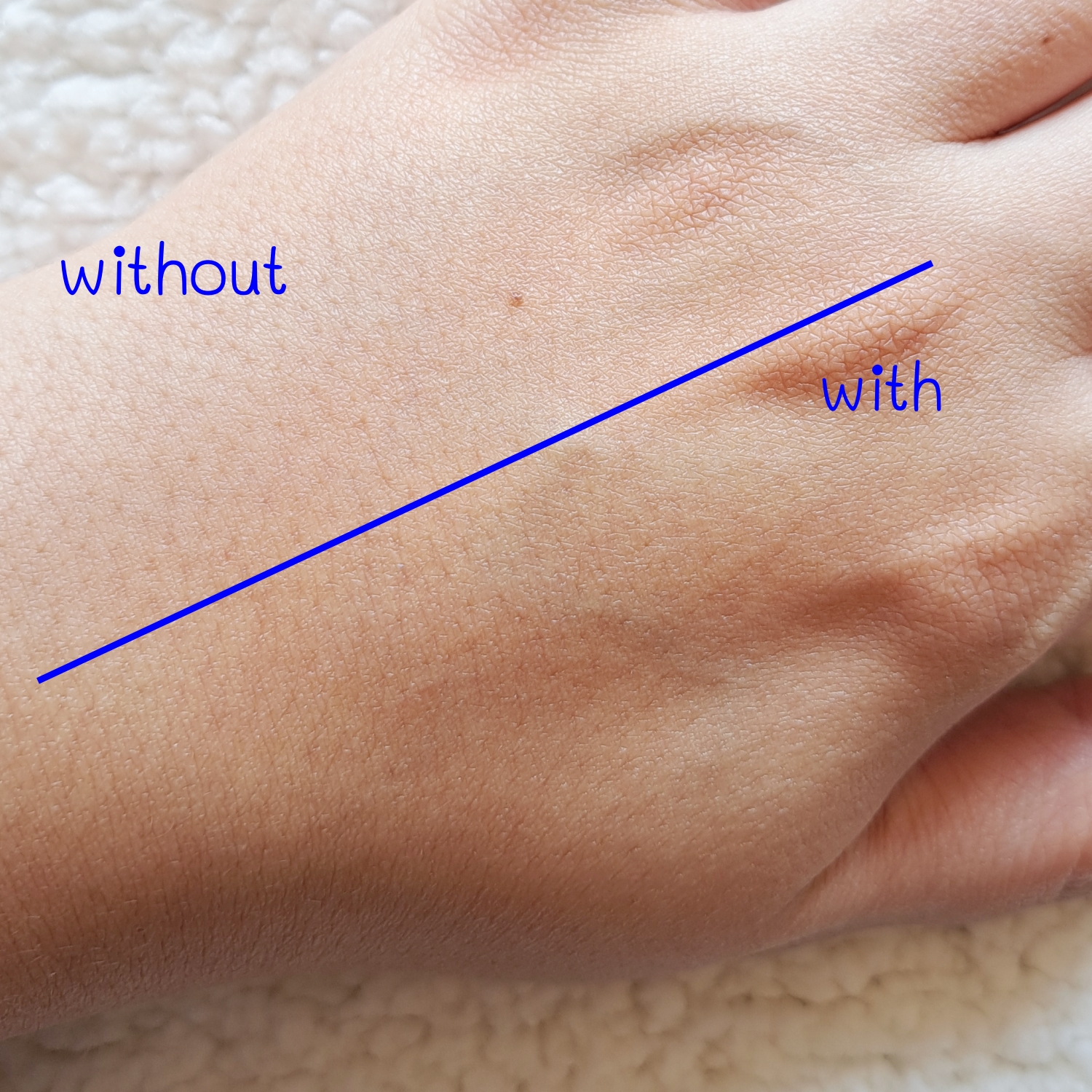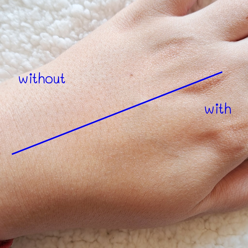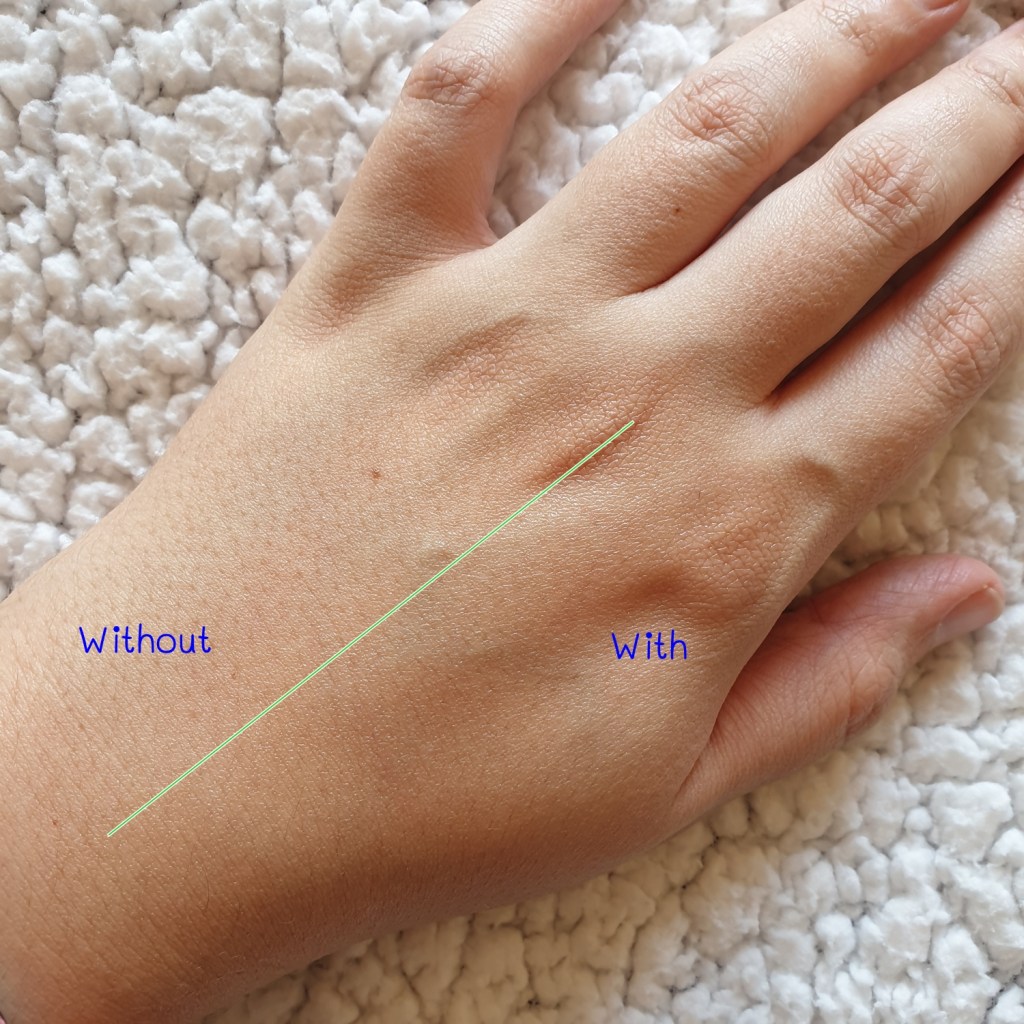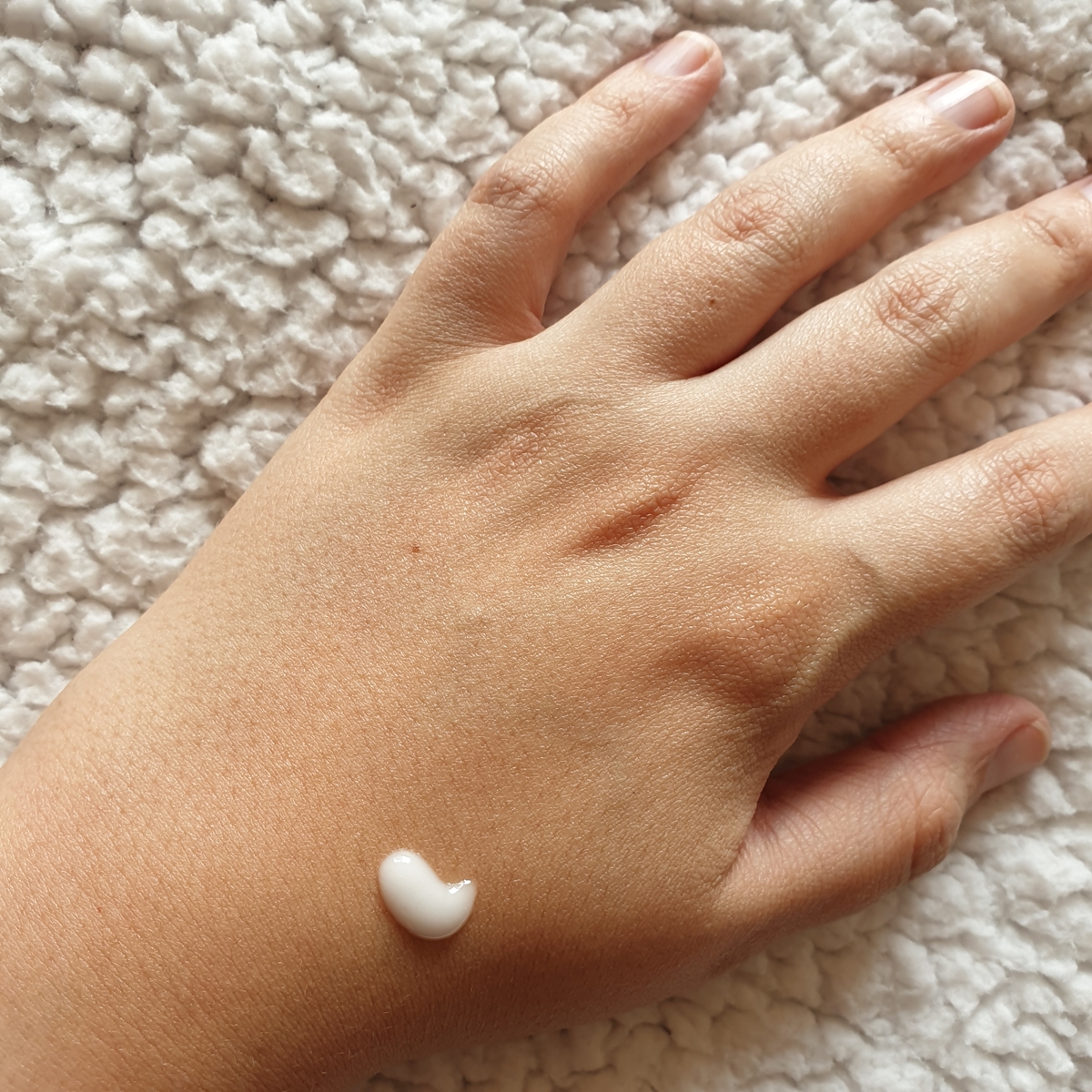 ตอนเกลี่ยจะขึ้นขาวได้เล็กน้อยซึ่งเป็นลักษณะปกติของการขึ้นเนื้อครีมด้วยสารที่ certified natural/organic นะคะ เมื่อเกลี่ยเสร็จแล้วจะได้ฟินิชที่ชุ่มชื้นดี