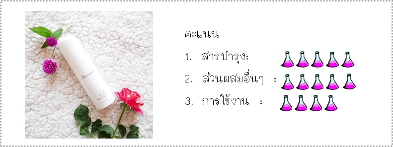 - ส่วนผสมอื่นๆ ทำมาได้ดี ไม่มีสารที่ไม่เป็นมิตรกับผิว ให้ไป 5 ฟลาสก์