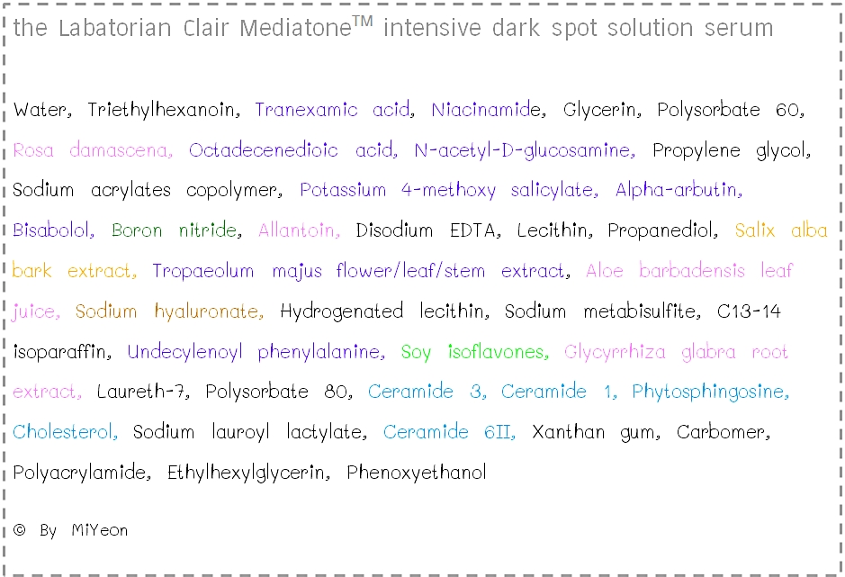 ในด้านสารบำรุงที่เด่นเรื่อง Whitening จะมี Highlight ingredient เป็น สารสกัดจากสาหร่ายสีรุ้ง Cystoseira tamariscifolia extract แบรนด์เคลมว่าเก็บด้วยมือจากพื้นที่ทะเลฝรั่งเศส และได้รับเคลม Organic ในส่วนของการออกฤทธิ์ กลไกการออกฤทธิ์ครบ ตั้งแต่ต้นน้ำ-กลางน้ำ-ปลายน้ำ ของกระบวนการสังเคราะห์เม็ดสี
